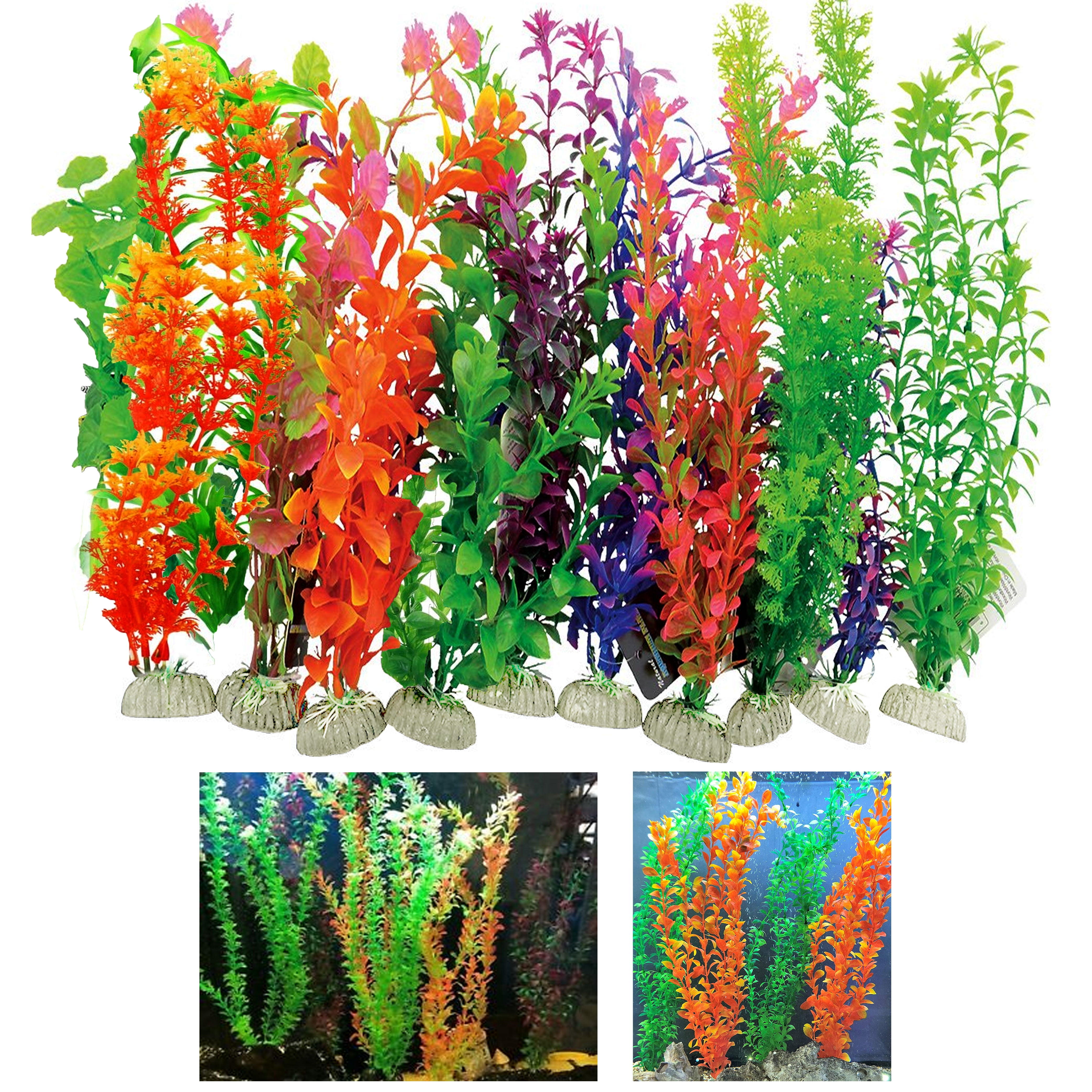 6 Pc Large Artificial Aquarium Fish Tank Plastic Plant Decoration 14 Inch Tall Walmart Com